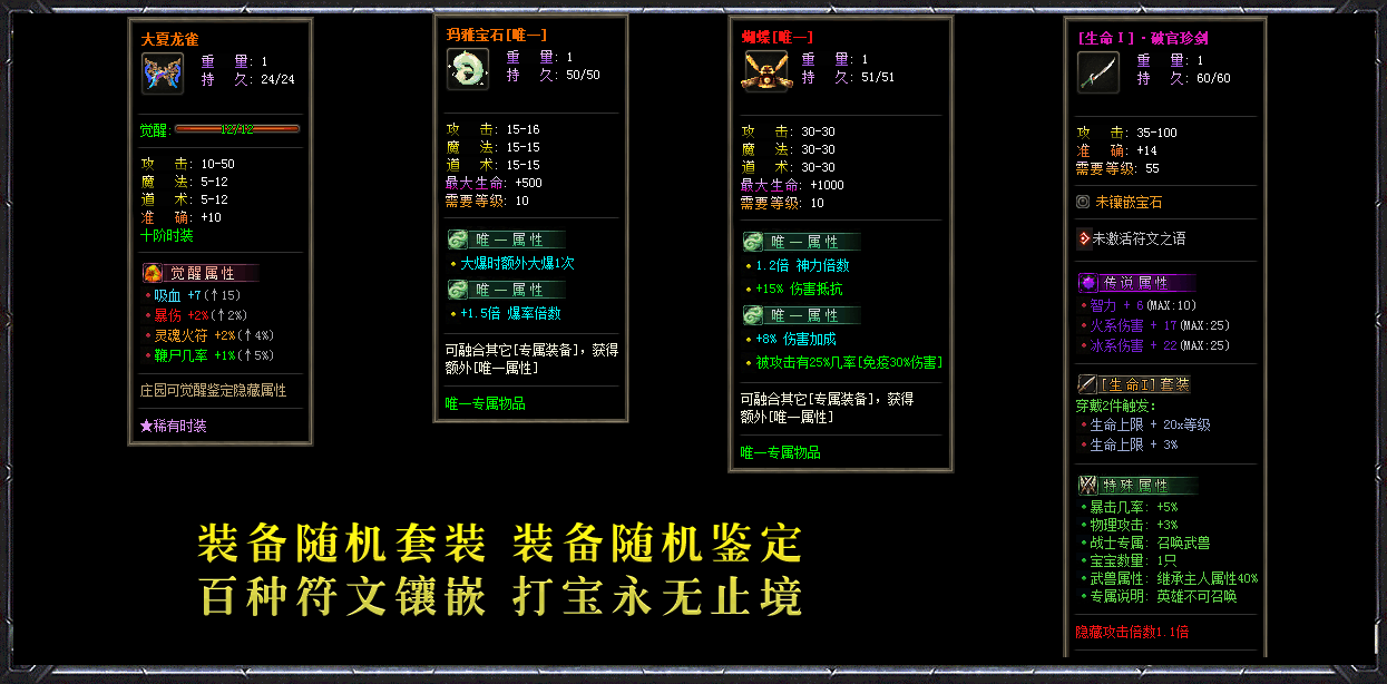 《英雄介绍》分为普通、极品、完美、传说等四种品质,属性各不相同!